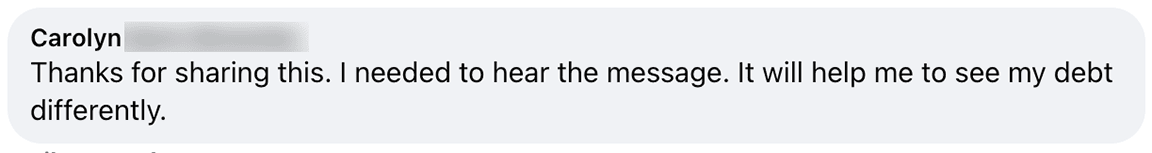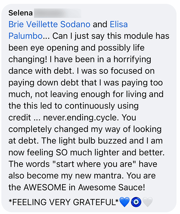 Over the years, I have found that women who make peace with their debts, pay them off faster. Emotional freedom makes space for financial freedom.